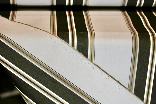 20 YARDS SUNBRELLA SHADE OUTDOOR FABRIC BLACK/TAUPE FANCY STRIPE 4946 47" WIDE