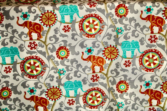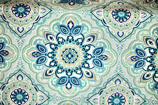 BERKSHIRE HOME WAM PUM TEAL PRINTED UPHOLSTERY FABRIC 55" WIDE BY THE YARD