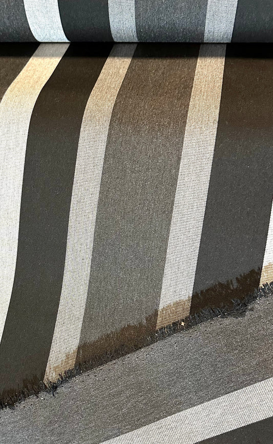 SUNBRELLA SHADE OUTDOOR FABRIC TAUPE TAILORED BAR STRIPE 4945 47" WIDE BY THE YARD