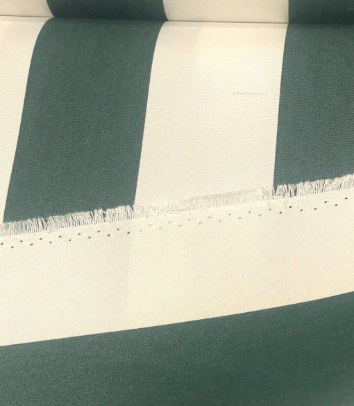Vertical Stripes in shades of forest green and white shades with a 7.47 inches repeat